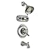 The awardwinning Victorian CollectionTM for the bath exudes a charming, oldworld feel. Available as a suite with matching accessories, the look can be carried seamlessly throughout your bath. Separate volume and temperature controls for maximum comfort. Handle adjusts volume, dial adjusts temperature. Monitor Scaldguard Valve Keeps Water Temperature Within 3F. Adjustable spray jets rotate 3, and from stream to spray for enhanced shower experience.