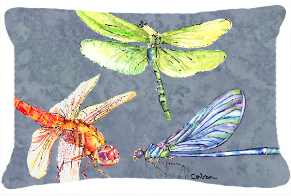 Caroline's Treasures 8878PW1216 Dragonfly Times Three Canvas Fabric Decorative Pillow Machine Washable, Indoor Outdoor Decorative Pillow for Couch, Bed or Patio, 12HX16W