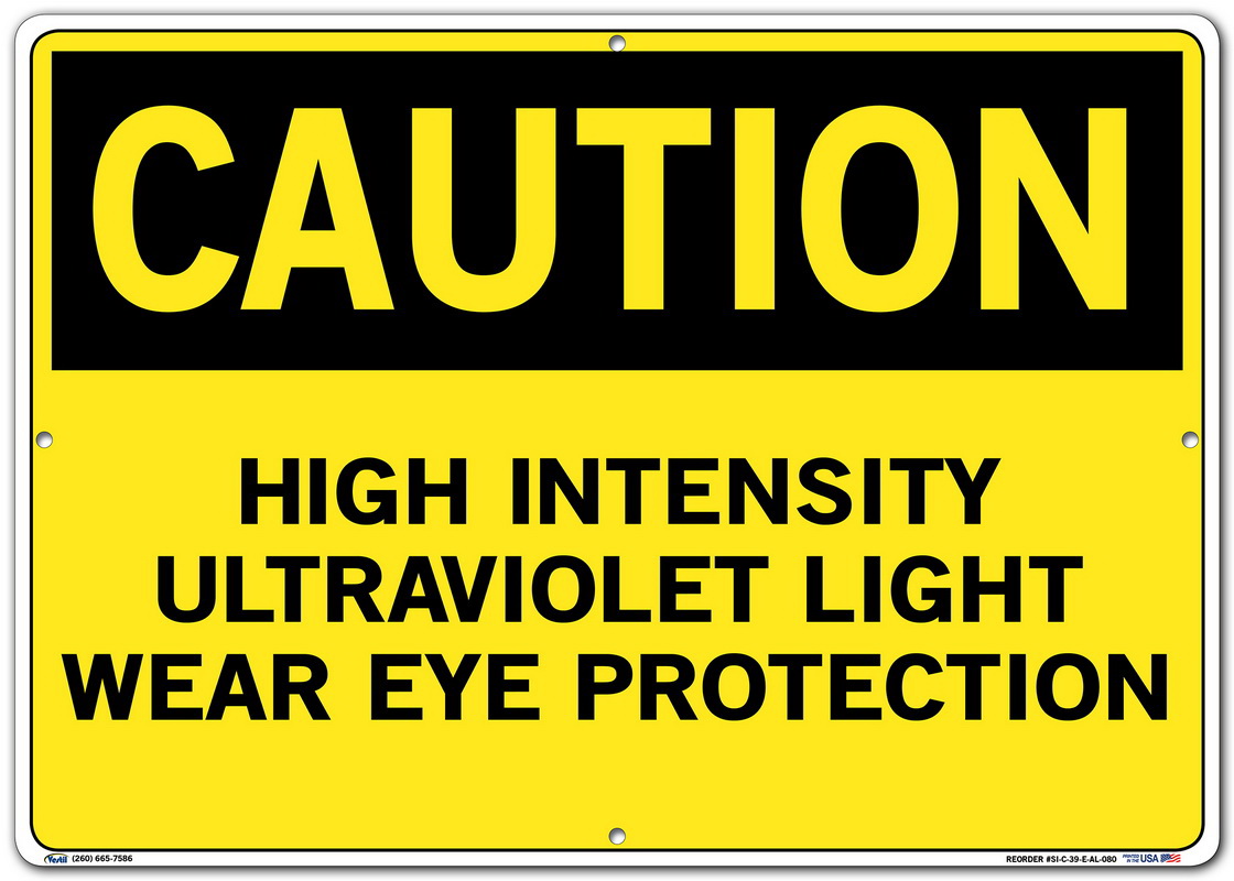 Vestil SI-C-39-E-AL-080 HIGH INTENSITY ULTRAVIOLET LIGHT WEAR EYE PROTECTION Caution Sign, Aluminum, 0.080" Overall Size, 20.5" W x 14.5" H