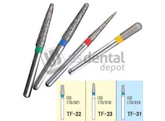 Osung 170TF-S31 Dental Diamond Burs, Taper Flat Shape, Standard Grit Multi-Use, (Pack of 5)