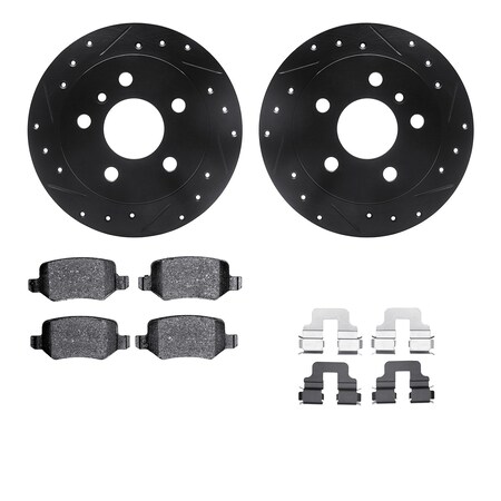 Dynamic Friction Company Rear Brake Rotors Drilled and Slotted Black with 5000 Advanced Brake Pads includes Hardware - 8512-63059