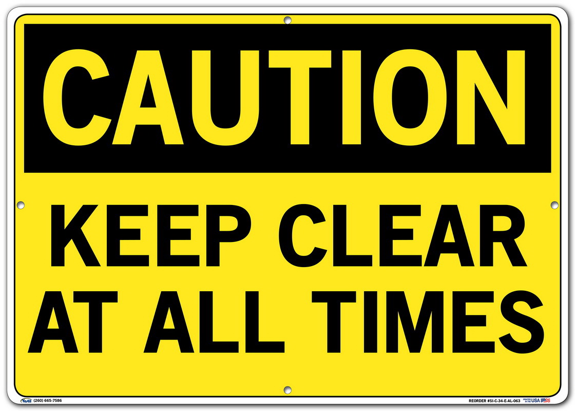 Vestil SI-C-34-E-AL-063 KEEP CLEAR AT ALL TIMES Caution Sign, Aluminum, 0.063" Overall Size, 20.5" W x 14.5" H