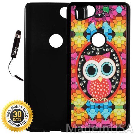 Custom Google Pixel 2 Case (Cute Colorful Owl Stained) Plastic Black Cover Ultra Slim | Lightweight | Includes Stylus Pen by Innosub