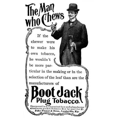 Stretched Canvas Art - Chewing Tobacco, 1897. /Namerican Magazine Advertisement, 1897, For Boot Jack Plug Tobacco. - Medium 18 x 24 inch Wall Art Decor Size.