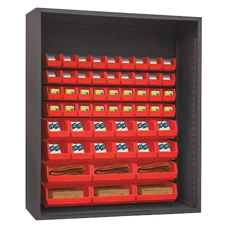 Toolschest.com|Toolschest.com. Durham 5019-54-1795 60 in. 12 Guage Enclosed Shelving with 54 Red Hook on Bins, Gray