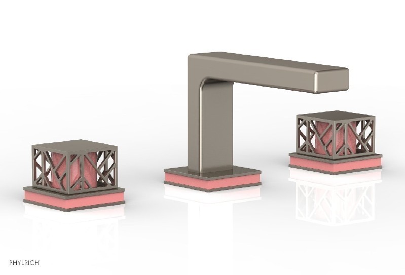 PHYLRICH 222-02/15AX045 JOLIE 4 5/8 INCH THREE HOLES WIDESPREAD DECK BATHROOM FAUCET WITH SQUARE HANDLES AND PINK...