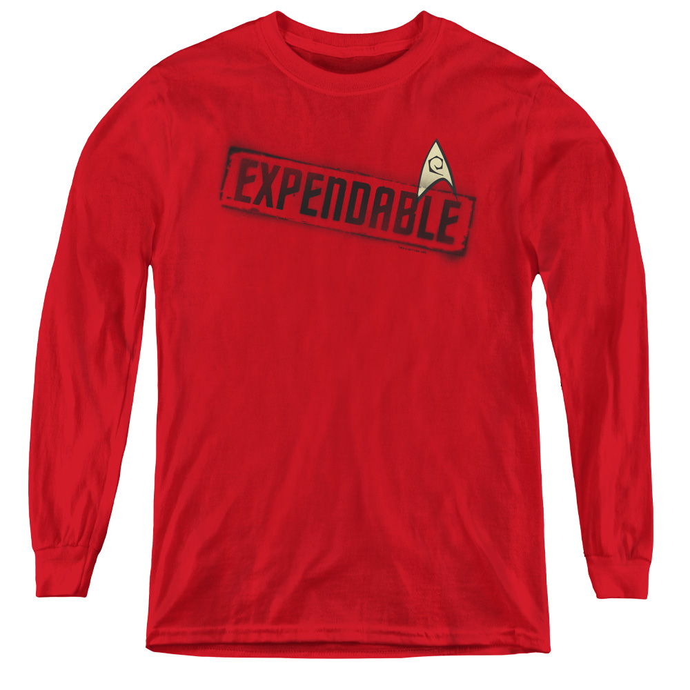 Trevco CBS1153-YL-2 Star Trek & Expendable - Youth Long Sleeve Tee, Red - Medium