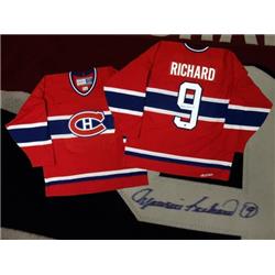 Autograph Authentic AAAJH31168 Rocket Richard Autographed Red Montreal Canadiens Jersey - 1.5 in.