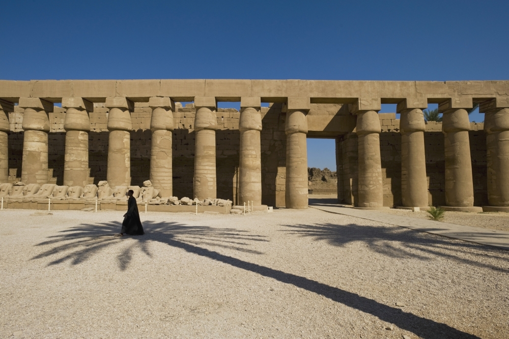 Posterazzi DPI1880057 Man Walking Past Shadow of Date Palm In Forecourt Poster Print, 17 x 11