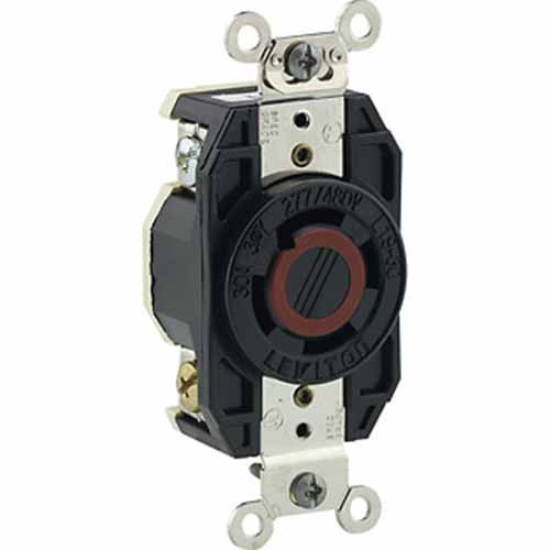 Leviton 2760 - 30 Amp - 277/480 Volt 3PY - NEMA L19-30R - Flush Mtg Locking Receptacle - Industrial Grade - Black