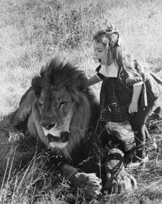 Posterazzi SAL9901829 Side Profile of a Girl Standing Near a Lion Panthera Leo Poster Print - 18 x 24 in.
