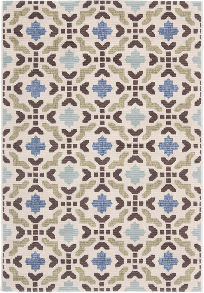 SAFAVIEH Veranda Collection Accent Rug - 4' x 5'7", Cream & Aqua, Floral Design, Non-Shedding & Easy Care, Indoor/Outdoor & Washable-Ideal for Patio, Backyard, Mudroom (VER080-0612)