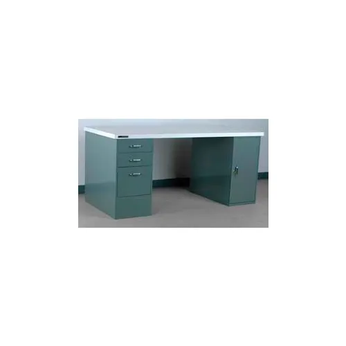 Stackbin Workbench, Pedestal Workbench, PLAS. Laminate Square Edge, 72"W X 30"D, BK