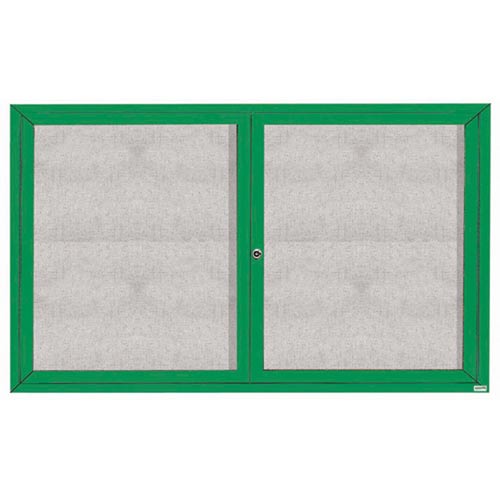 Aarco ODCC3660RIG 36" x 60" Enclosed Hinged Locking 2 Door Powder Coated Green Outdoor Lighted Bulletin Board Cabinet