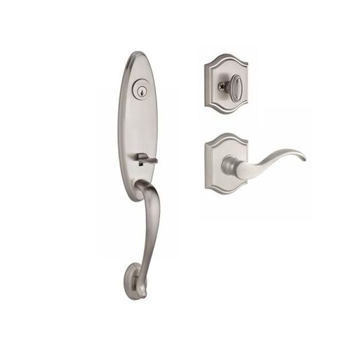Baldwin Reserve SCCHEXCURLTAR150THK Single Cylinder Chesapeake Handleset Left Hand Curve Lever and Traditional Arch Rose with 6AL Latch and Dual Strike for Thick Door Satin Nickel Finish