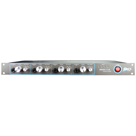 <b>DACS Clarity HeadLite 3 - 4-channel Headphone Amplifier</b><br />Headphones are increasingly important for many aspects of audio production. With the quality of headphone design and manufacture is higher now than it has ever been. Ensuring the very best performance from these headphones requires they be driven by a dedicated headphone amplifier. These days "making do" with the headphone socket from the mix board just doesn't really do at all. Especially when there is more than one set of ears which need to listen in.</p><p><b>Clarity and Sound Quality</b><br />Whatever the headphone task the quality of the final result begins with whatever you can hear in your ears. Accurate representation of the whole audible frequency range is essential and any over-emphasis of certain bands, or overall mud or indistinctness in the sound, will inevitably affect both the overdub and the overview. The metering added to the busses that feed the amplifiers allows users to set their input levels, making sure what goes in to the amplifier will give optimum output performance.</p><p><b>Power</b><br />Amplifier power is not just about level (sound pressure level) it is about clean level (sonically pure level). A cheap headphone amplifier when pushed beyond its narrow limits can begin to distort before your headphones or your ears. Something that not only compromises the sound you can hear, it can also damage your hearing. A headphone amp which has enough power should be 'cruising' for the whole of its useable range. So the output signal is always as clean as the technical specifications indicate it should be.</p><p><b>Flexibility</b><br />In a studio you might use more than one set of headphones, without every listener wanting the same source. So a good headphone amplifier will provide multiple outputs with individual amplifiers for each and a choice of inputs.</p><p><b>Design</b><br />The DACS Clarity <b>HEADLITE III B</b> like all of DACS products are designed in the field by working engineers and developed by industrious boffins. It scores top marks in all of the above: Excellent Clarity and Sound Quality is ensured by the design of the amplifier which produces very low distortion and an extended and flat frequency range.</p><p>The Power of the output on the standard channels is more than sufficient to drive any headphone of any impedance. Special higher power channels can be specified to drive multiple headphones without loss of volume.</p><p><b>Flexibility</b><br />And the Flexibility is provided by four bussed inputs selectable in combination on each of the four stereo output amplifiers and eight physical outputs. The standard channel amplifiers of HeadLite 3 have power to spare. 125mW RMS into 150 Ohms - and each will easily and cleanly drive 400 Ohm headphones at possibly unwise maximum output levels. We fit HeadLite 3 with one high power channel for driving multiple headphones. In tests six 400 Ohm headphones were powered with no loss of level (additional channels can be specified with order or retro-fitted) - and has overall power output of over 200mW RMS into 600R.</p><p><b>Technical</b><br />Outputs for each channel appear on both the front and rear of the unit, and are able to drive long audio lines to remote headphone outlets such as in vocal booths or over-dub rooms. Users can select from the four inputs (A, B, C and D) to hear A and B, or C and D as stereo, and A, B, C or D as mono. This means you can send two different submixes to the HeadLite from the mixer aux-outs to suit two different purposes. For example, the drummer and the singer might well need to hear different balances in their headphone feeds.</p><p>HeadLite 3 offers excellent signal to noise ratios, low cross talk, very low distortion and a bass response that is flat well under 20Hz. The unit's frequency response (-0.5dB at 3hz to 35kHz) is substantially flatter (within 0.1dB over the 22Hz to 22kHz band) than its predecessor. Because of the design of the amplifier's output stage, its high frequency response does not suffer significantly, even down very long lines.</p>
