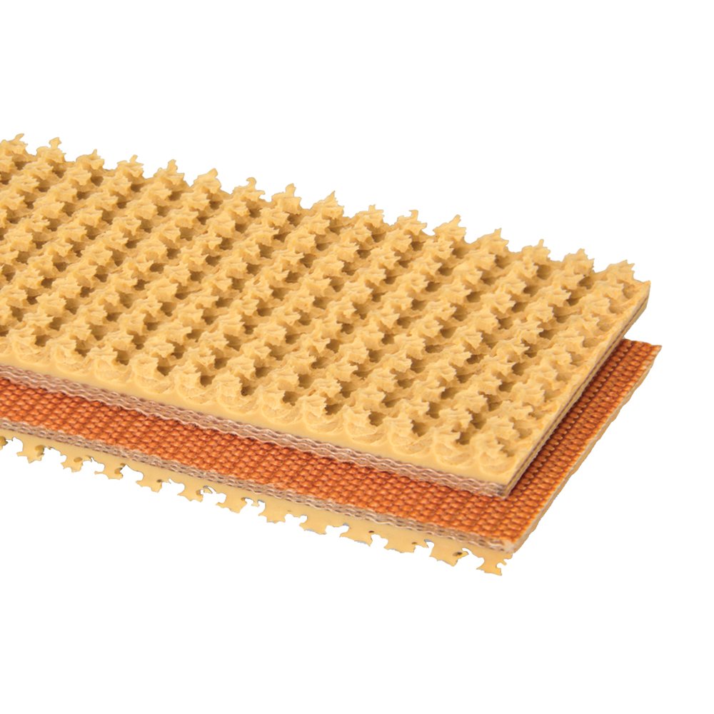 An incline belt with a premium high-grip PVC-grooved cover for use on low-profile applications. Used in dirty, dusty conditions, occasional cleaning will restore the high-grip action.