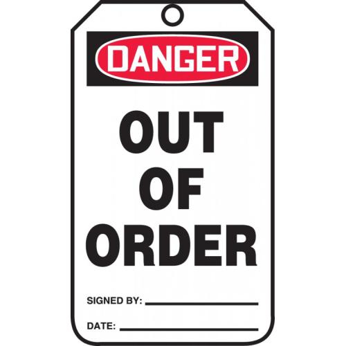 Order MDT282PTM by Accuform 8-1/2" x 3-7/8" RP-Plastic Tag "Out of Order" - US Mega Store