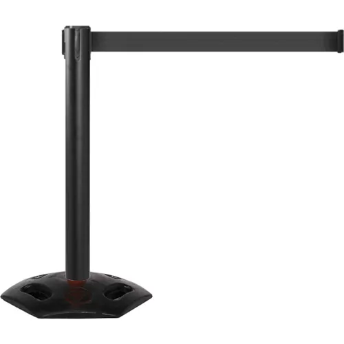 WeatherMaster 300 Retractable Belt Barrier, 40" Black Post, 16' Black Belt
