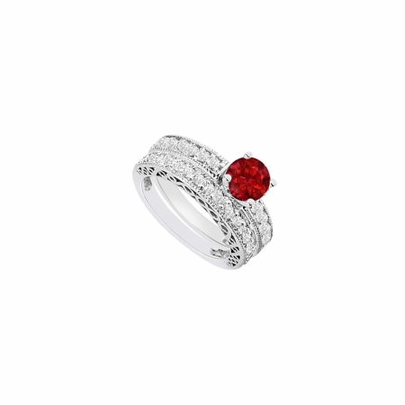 Fine Jewelry Vault UBJS622ABW14DRRS10 14K White Gold Ruby & Diamond Engagement Ring with Wedding Band Set, 1.50 CT -