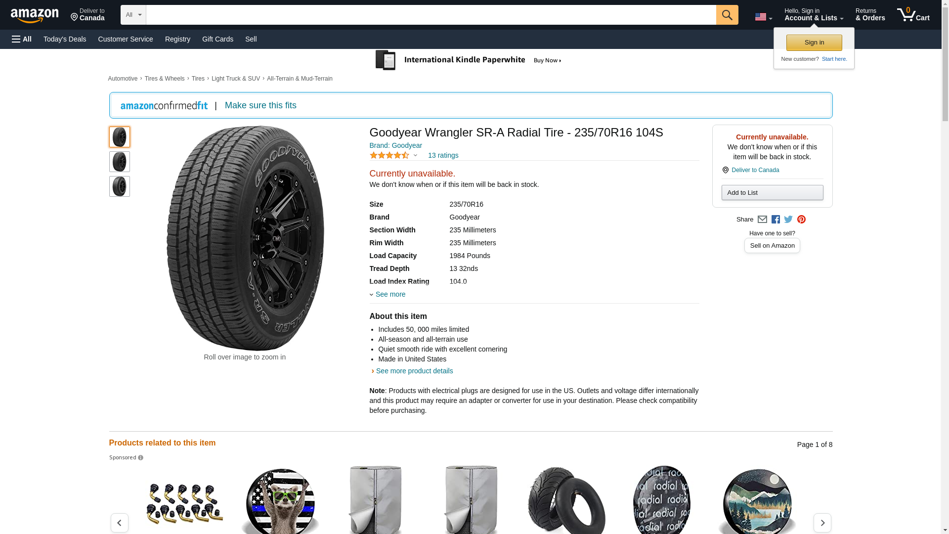 | Feature | Goodyear WRANGLER SR-A SOWL P235/70R16 |