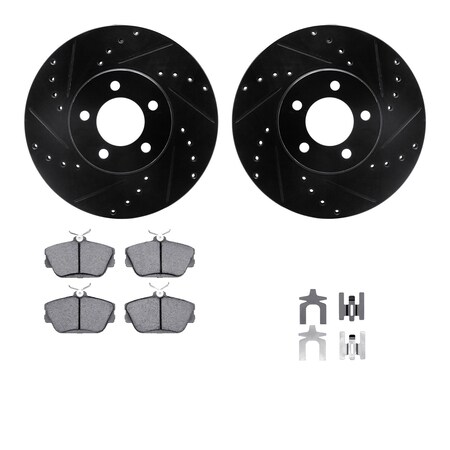 Dynamic Friction Company Front Brake Rotors-Drilled and Slotted-Black with 5000 Euro Ceramic Brake Pads includes Hardware 8612-54001