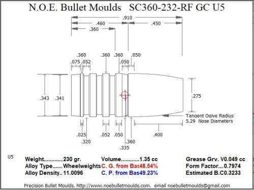 Bullet Mold 4 Cavity Aluminum .360 Caliber Gas Check 232gr Bullet with a Round/Flat Nose Profile Type. These are The wor