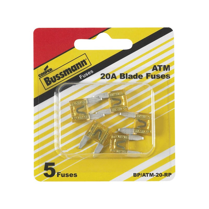 Buss ATM Automotive Fuse, 20A, 32V, Yellow, 5PK - No. BP/ATM-20-RP