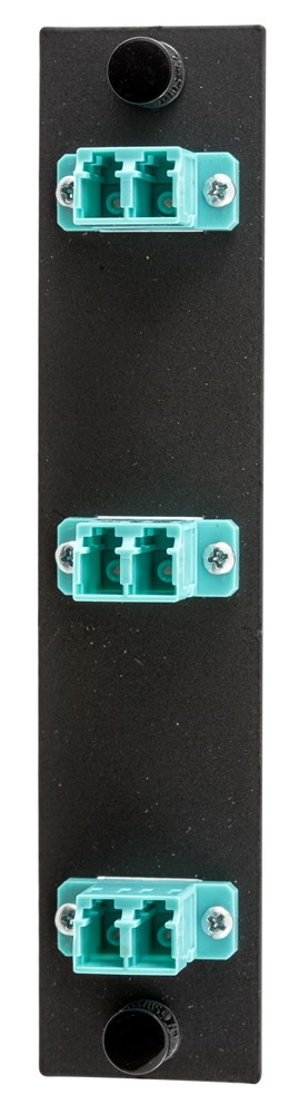 Hubbell HUBFSPLCDM3AQ Adapter Panel, 6-Fiber, 3LC Duplex, Phosphor Bronze, Aqua