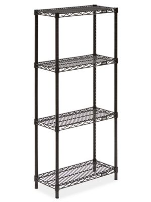As an Amazon Associate, we earn from qualifying purchases. Black Wire Shelving Unit - 24 x 12 x 54 BLACK . H-2420-54 Gallery Attributes Brand name, Manufacturer name, ManufacturerBLACK KnownManBlack Wire Shelving Unit - 24 x 12 x 54" H-2420-54 - Uline Extra Product NameBlack Wire Shelving Unit - 24 x 12 x 54 Weight36 WeightUnitlbs moq, multiple, tierMinQty11 qtyInStock-2 qtySourceFieldMap SKUH-2420-54 snippet4 SHELF STARTER UNIT Decorative heavy-duty black wire shelving looks good in offices, stores and warehouses. Easy assembly ? No tools needed. Shelves adjust in 1" increments. Open wire maximizes airflow, reduces dirt and dust build-up. Black powder coating resists corrosion, lasts for years. NSF certified. Optional 5" polyurethane swivel stem casters add 6" to height. Add-On Units and Wire Shelving Accessories available.ULINE offers over 41,000 boxes, plastic poly bags, mailing tubes, warehouse supplies and bubble wrap for your storage, packaging, or shipping supplies. tierPrice1120 Distributor offers SellerSKUMOQIn stockMultiplePrices UlineH-2420-541-211 @ $120.00