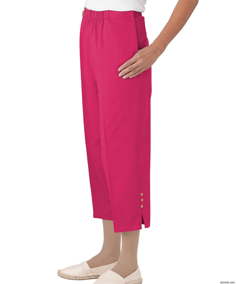 Silverts 234500505 Womens Open Side Arthritis Adaptive Cotton Capris Pants for Easy Access Clothing, Magenta - Extra