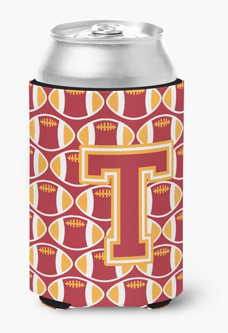 Carolines Treasures CJ1070-TCC Letter T Football Cardinal & Gold Can or Bottle Hugger
