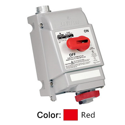 Leviton 420MI7W - Mechanical Interlock North American Pin & Sleeve Receptacle - 20 Amp - 480 Volt 3-Phase - 3P - 4W - Non-Fused - RED