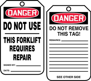 Order TRS338PTP by Accuform Forklift Status Safety Tag "Danger- Do Not Use" - US Mega Store