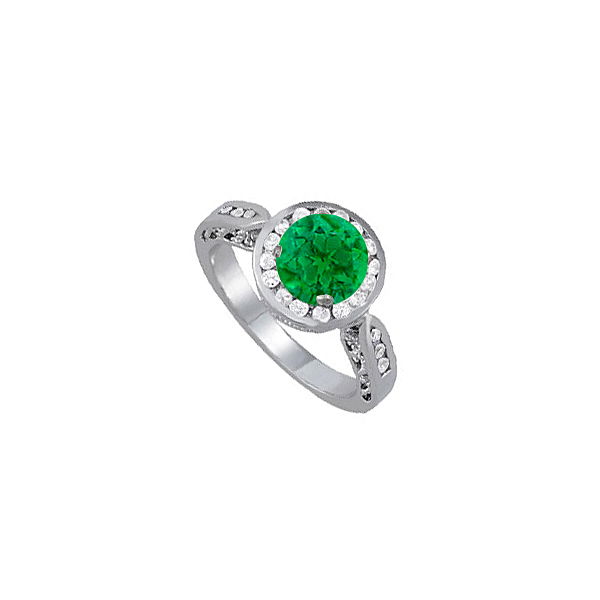 Fine Jewelry Vault UBUNR50338W14CZE Emerald CZ Accents Ring in 14K White Gold, 22 Stones