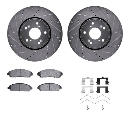 Dynamic Friction Company Front Brake Rotors-Drilled and Slotted-Silver with 3000 Series Ceramic Brake Pads includes Hardware 7312-58032