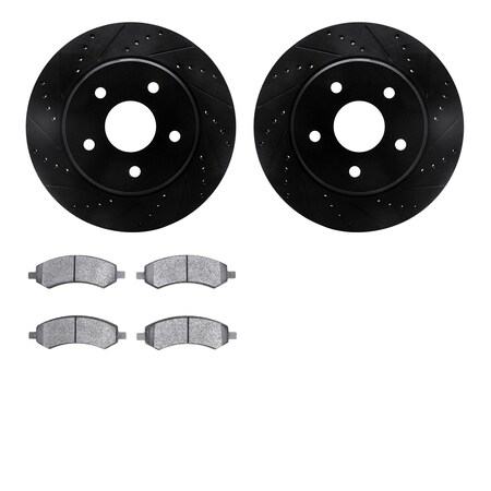 Dynamic Friction Company Front Brake Rotors-Drilled and Slotted-Black with Ultimate Duty Performance Brake Pads 8402-42012
