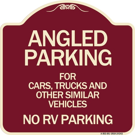 Angled Parking for Cars Trucks and Similar Vehicles No RV Parking Aluminum Sign