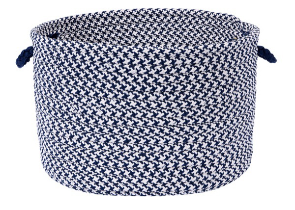 Outdoor Houndstooth Tweed- Navy 14''x10'' Utility Basket