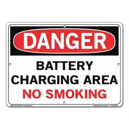 Vestil SI-D-45-C-AL-063 BATTERY CHARGING AREA NO SMOKING Danger Sign, Aluminum, 0.063" Overall Size, 14.5" W x 10.5" H