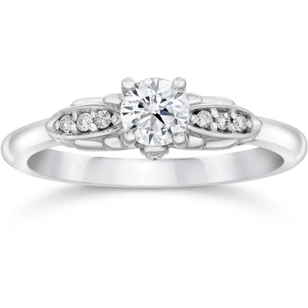 1/2 Carat Diamond Vintage Engagement Ring 14K White Gold