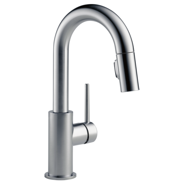 Delta Faucet Trinsic Bar Faucet Brushed Nickel, Bar Sink Faucet Single Hole, Wet Bar Faucets with Pull Down Sprayer, Prep Sink Faucet, Faucet for Bar Sink, Arctic Stainless 9959-AR-DST