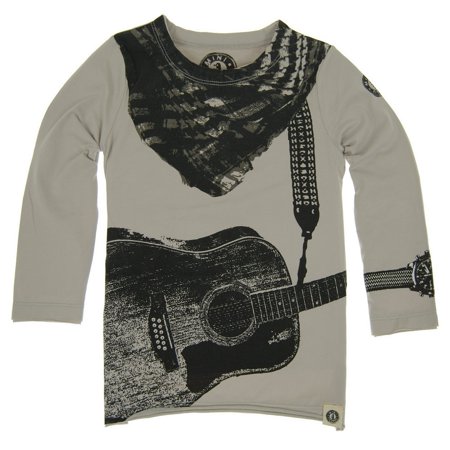 <ul> <li>Mini Shatsu tee with wrapped around acoustic guitar and screen printed scarf</li> <li>Sewn on elbow patches, wrist watch print</li> <li>Two-color raw edge details, printed label to avoid discomfort</li> <li>95% Cotton 5% Spandex. Machine wash</li> <li>Sizing is based on U.S. clothing size standards</li> </ul>