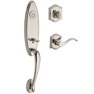 Chesapeake - Left Handed Full Dummy Chesapeake Handleset with Curve Door Lever with Traditional Arch Rose in Polished Nickel - Baldwin Hardware FD.CHExCUR.L.TAR.141