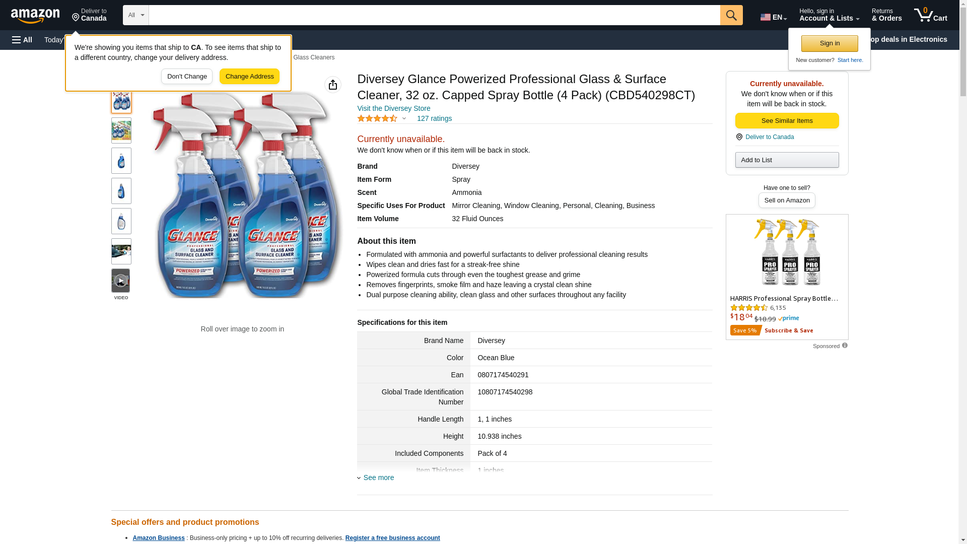 Diversey CBD540298 Glance Powerized Glass & Surface Cleaner, Liquid, 32 oz, 4/Carton