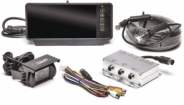 Rear View Camera System, Camera Type CCD, Viewing Angle 130 Degrees , Camera Resolution 480 TVL, Monitor Type Replacement Mirror, Monitor Size 7 In., IP Rating 68, Features Mirror Image Capability, 3 Channel Multiplexer Can Connect A DVD Player or Other Cameras, Automatic System Switch, CCD 130 Degrees Camera with 18 Infrared Gives 50 ft. Infrared Night Vision, Weatherproof with An IP68 Rating, Shock Resistant, 20G Impact Rating, Power Required 12 to 24VDC