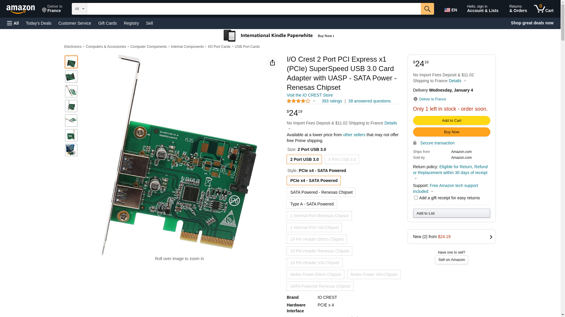 I/O Crest 2 Port PCI Express x1 (PCIe) SuperSpeed USB 3.0 Card Adapter with UASP - SATA Power - Renesas Chipset