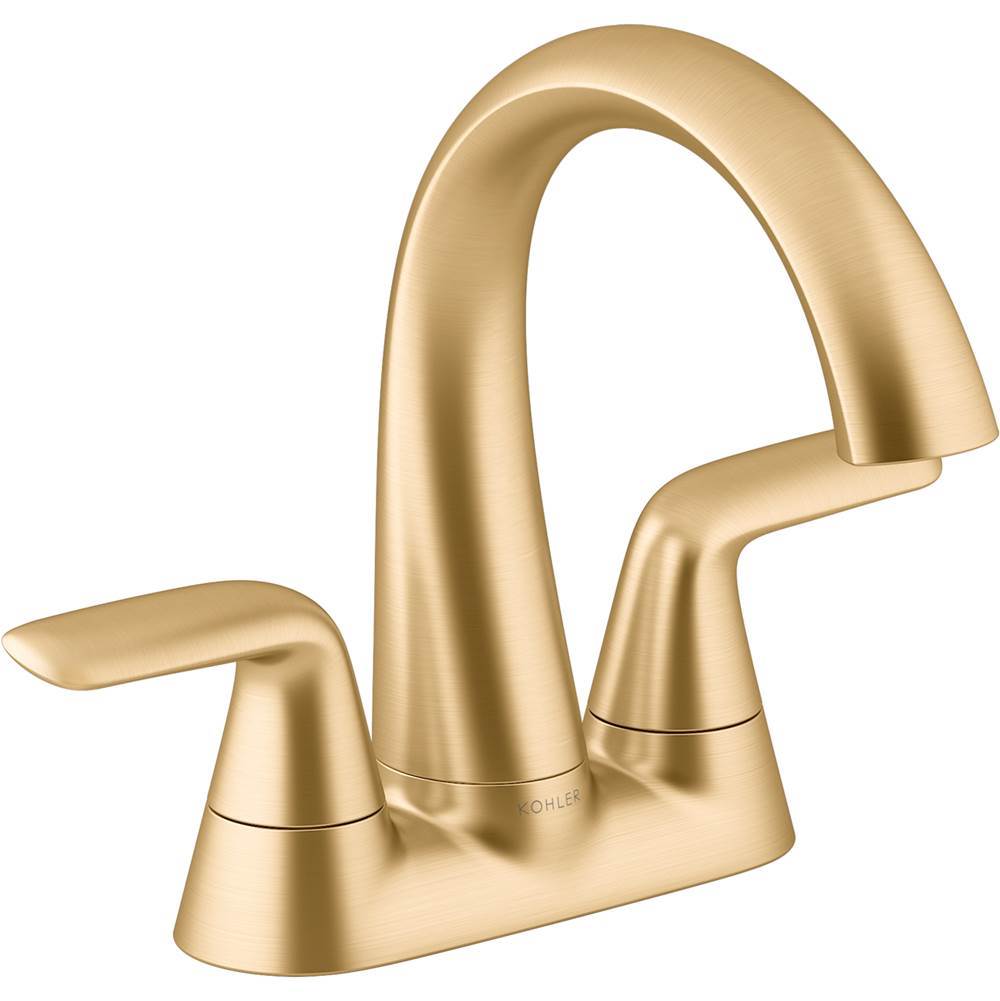 Kohler Avail Vibrant Brushed Moderne Brass Mid-Arc Bathroom Sink Faucet with Drain 2-Handle 4-in centerset K-R33047-4D-2MB