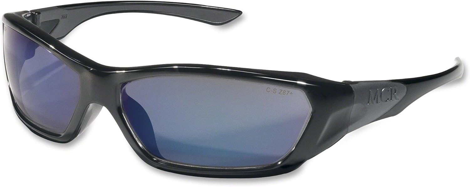 MCR SAFETY FF128B ForceFlex Safety Glasses, Black Frame, Blue Lens