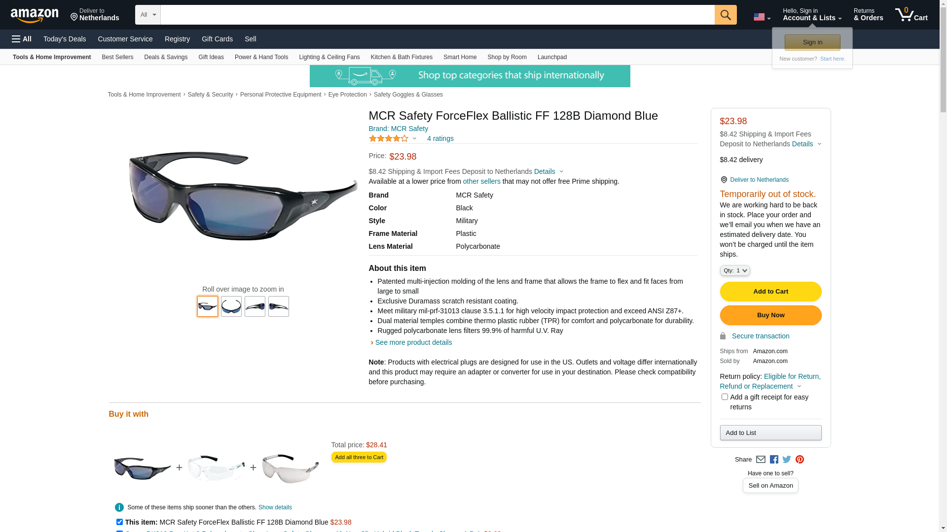 CREWS FF128B ForceFlex Safety Glasses, Black Frame, Blue Lens